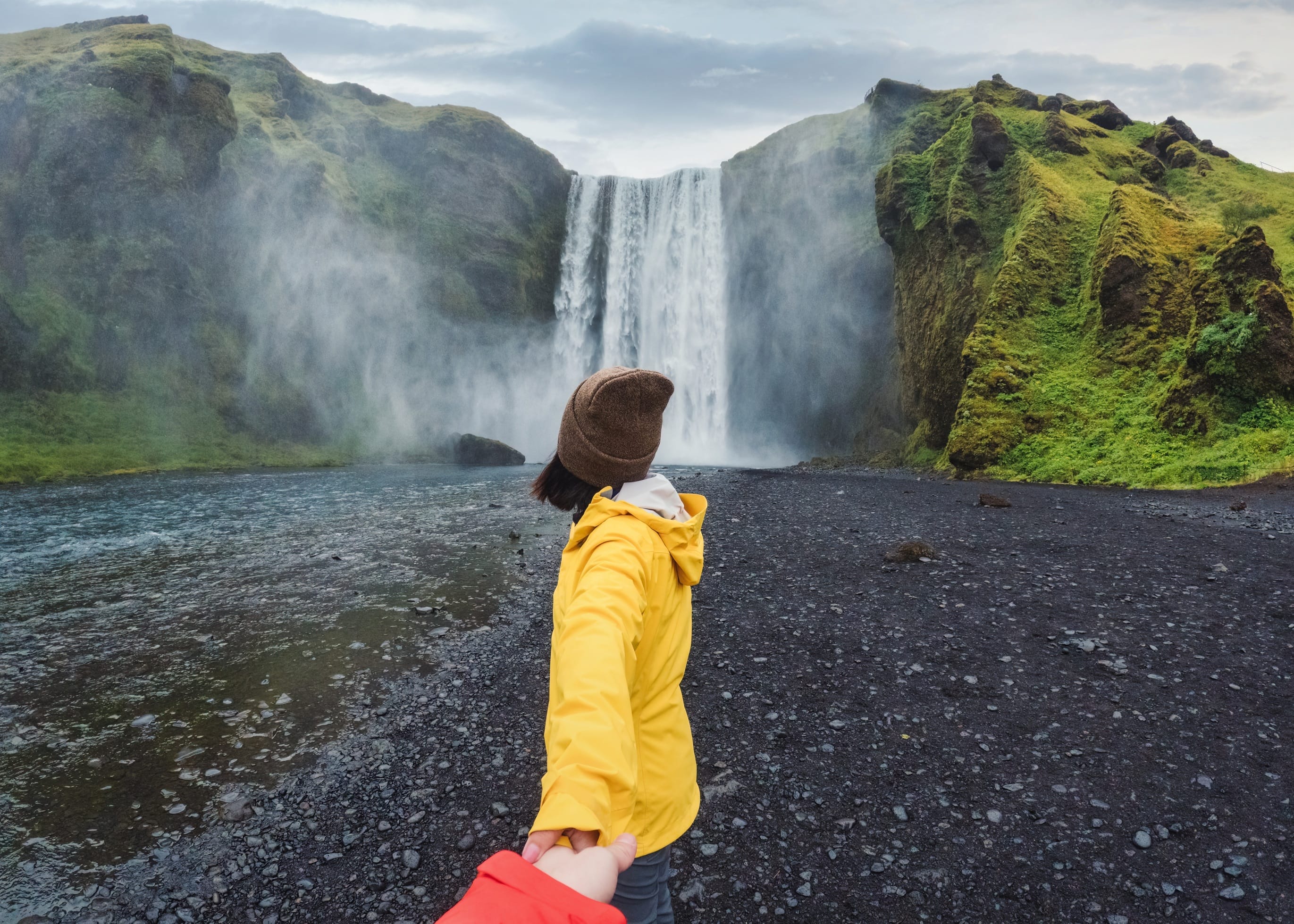 • Skógafoss- a powerful waterfall that often creates misty rainbows